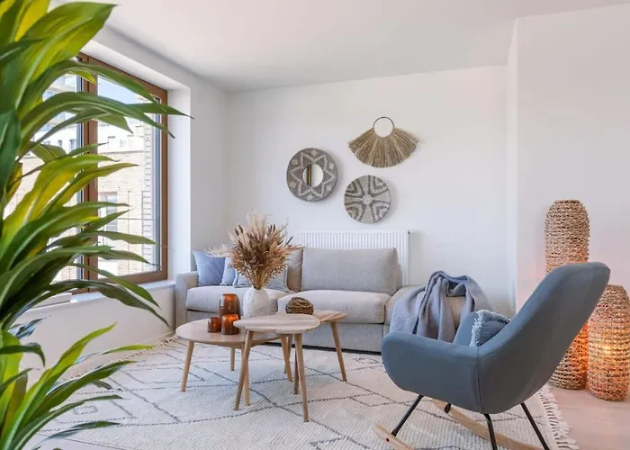 Stylish Apartment With Terrace Near The Beach Ostenda o powierzchni 65 m^2 położony jest w dzielnicy Mariakerke oraz oferuje słoneczne patio z widokiem miasto. Pomnik Leopolda II i Miejscowość Raversijde znajdują się odpowiednio w odległości prawie 25 min spacerem i prawie 10 min autem od apartamentu.